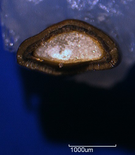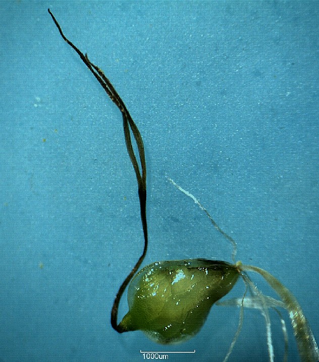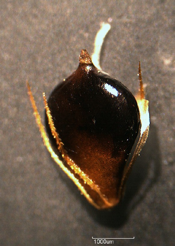 Fruchtoberfläche mit einem deutlichen Wabenmuster (20 x Vergrößerung), Perigonborsten an der reifen Frucht hinfällig