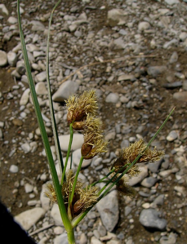 im Vergleich zu Bolboschoenus maritimus oft größer und kräftiger, ältere Blätter blaugrün