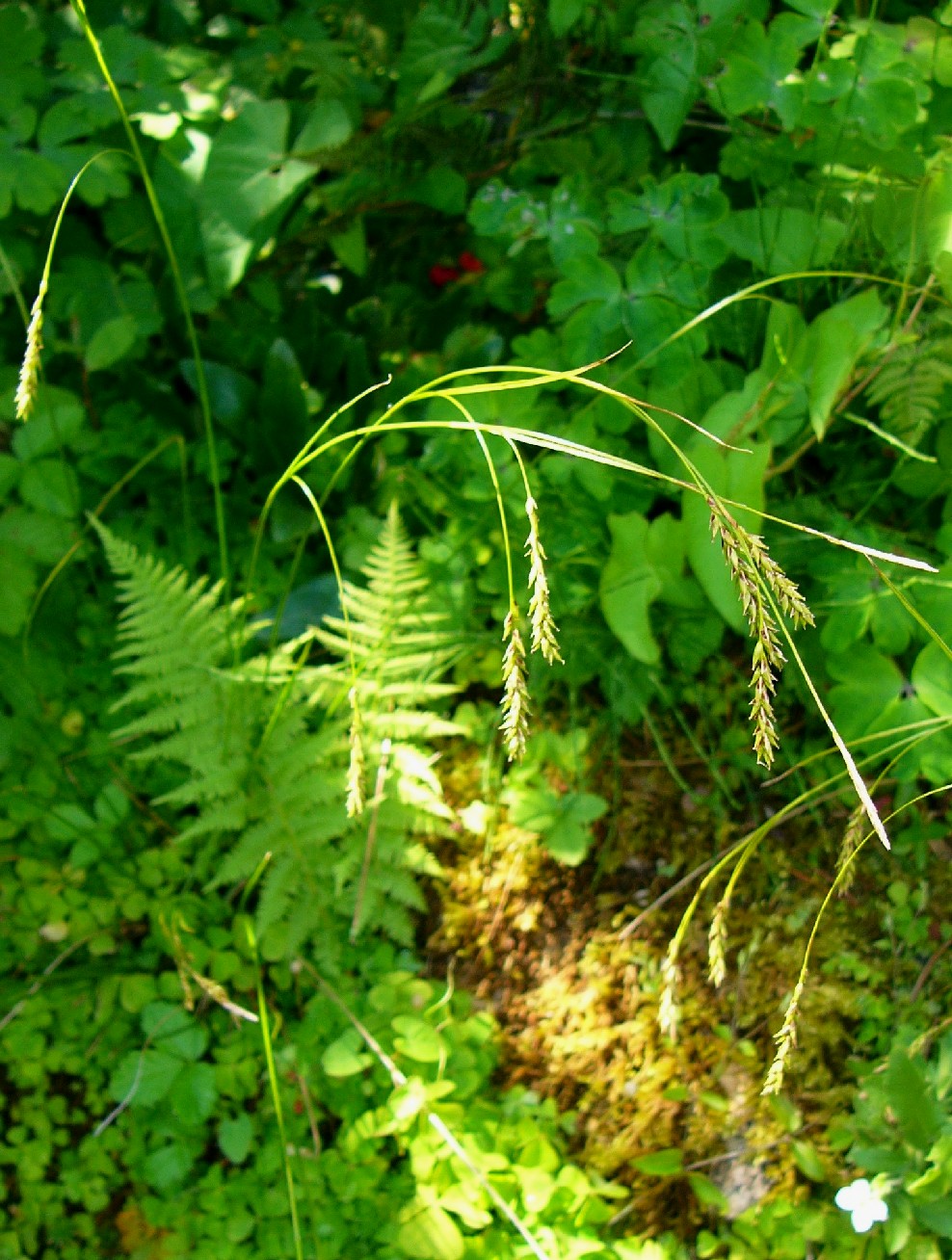 Schläuche kahl, Blätter kahl, 1 - 2 mm breit, reife weibliche Ähren schmal zylindrisch, überhängend,