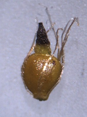 Frucht im Querschnitt deutl. 3-kantig, mit 4 - 6 Perigonborsten, die so lang oder etwas kürzer als die Frucht sind, Griffelpolster höher als breit, deutlich eingeschnürt, etwa halb so breit wie die Frucht