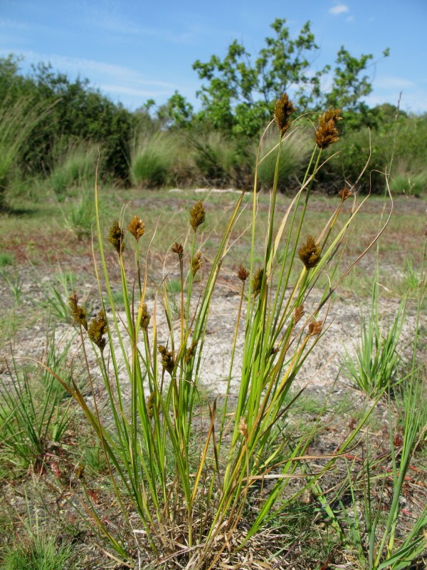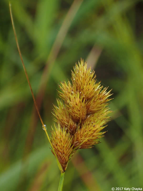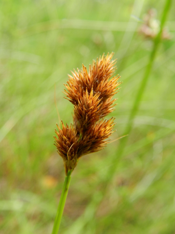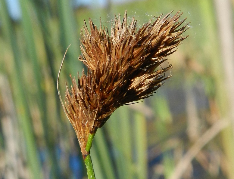 Blütenstand mit 5 - 12 relativ weit auseinander stehenden, reif gelbbraunen bis braunen Ährchen