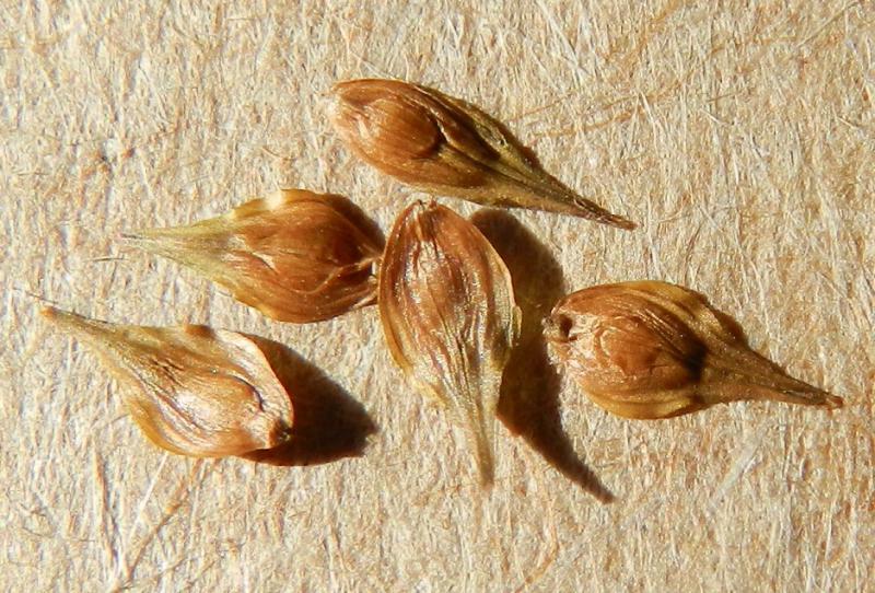 Stängelende gehäuft, nicht zurückgebogen, Spelzen bräunlich