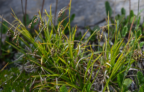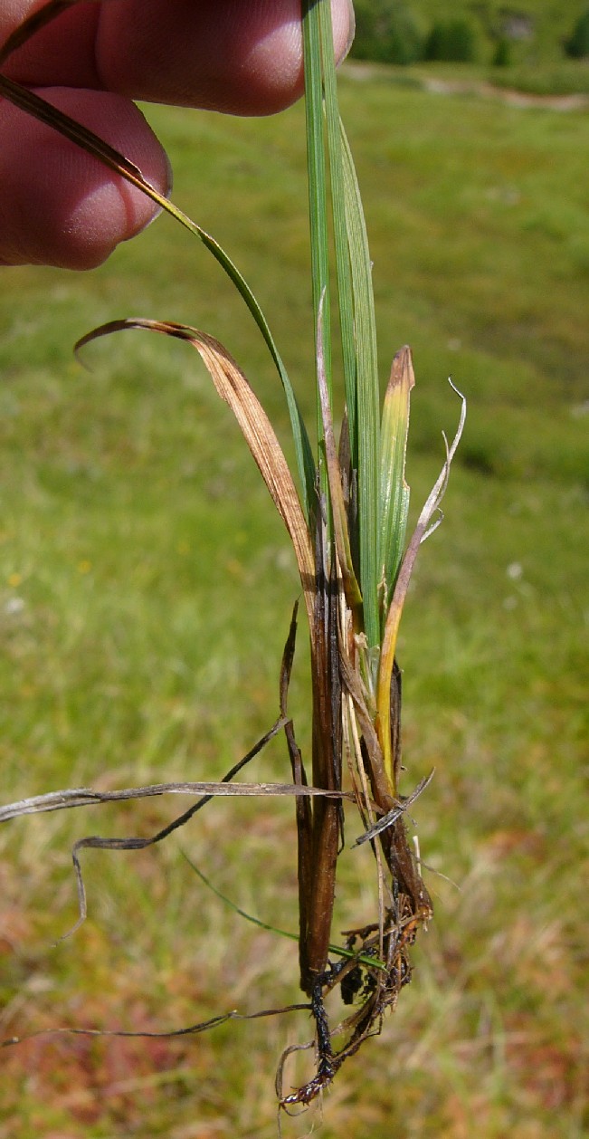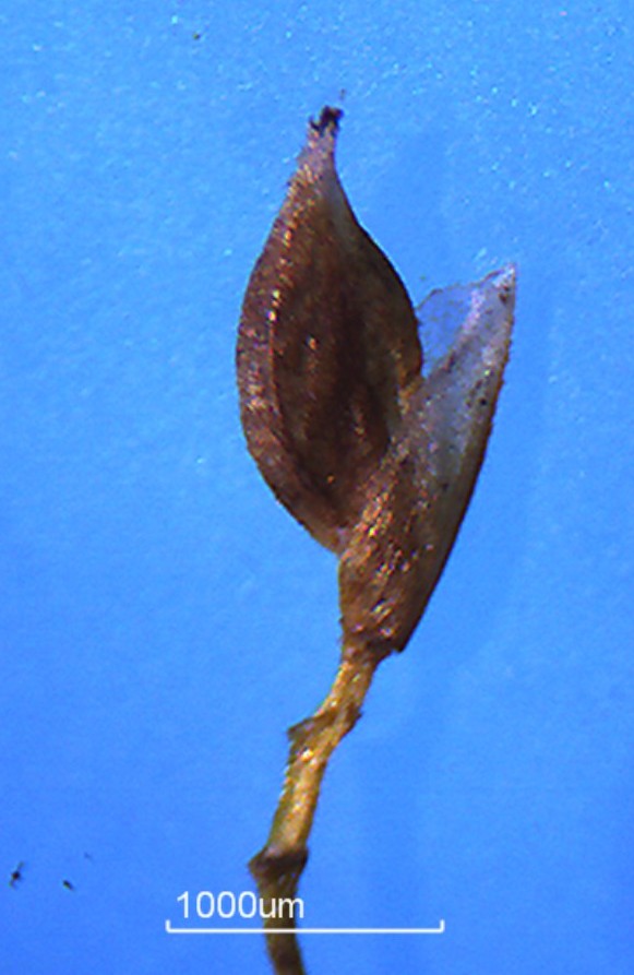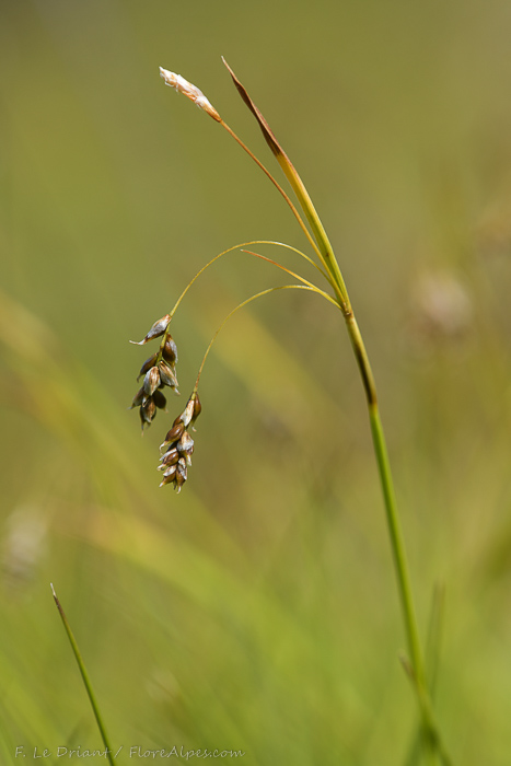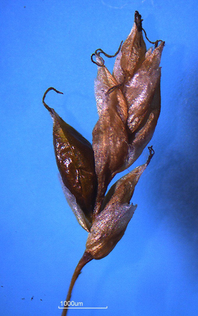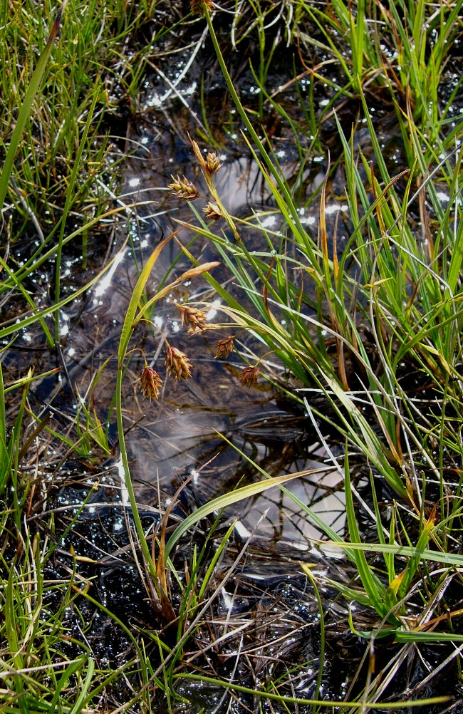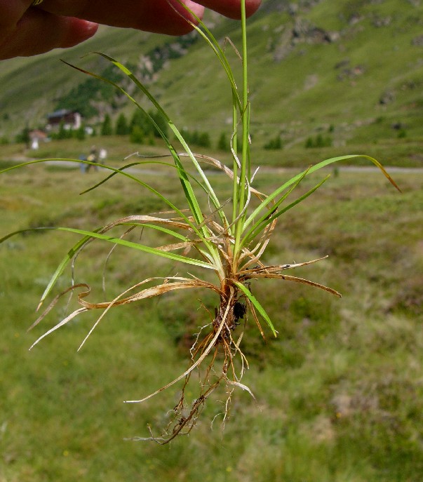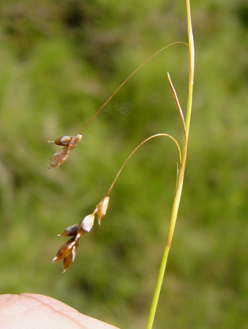 Weibliche Ähren mit 6 - 8 Blüten, lang gestielt, deswegen Schläuche elliptisch, 2 - 3,5 mm lang, 3 Narben Spelzen braun, häutig, kürzer als die Schläuche Blätter