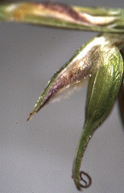 Schläuche unreif grün, gelblich bis hellbraun, 3 - 3,5 mm lang,
