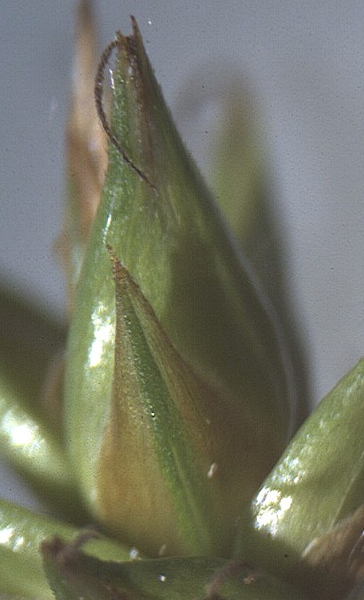 7 Pflanze in steif aufrechten Horsten, Blätter 3 - 5 mm breit, reife Schläuche sparrig abstehend