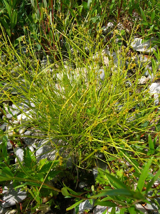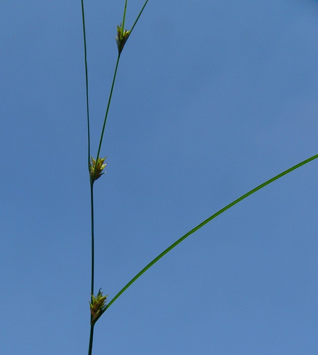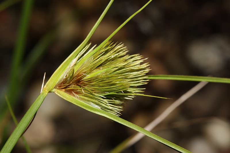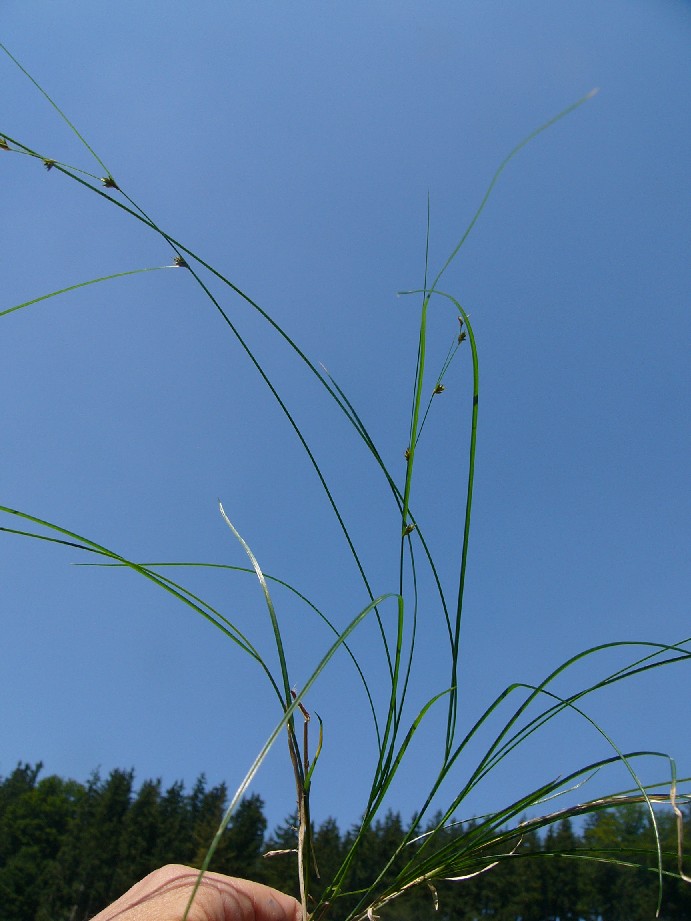 Die unteren Ähren sind weit voneinander entfernt, in den Achseln (= Winkeln) von sehr langen, den Stängel oft überragenden Tragblättern