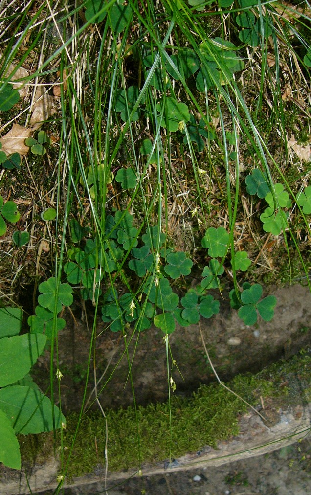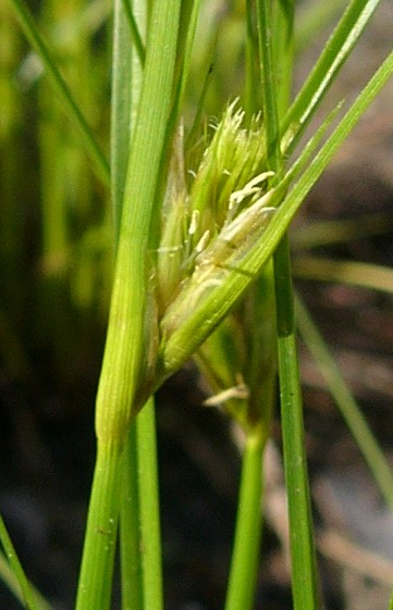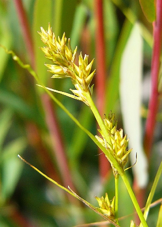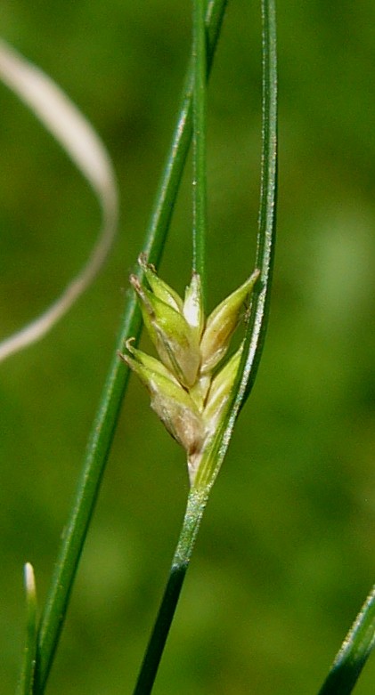 Gleichährige Seggen- Blütenstand aus vielen Ährchen, Spelzen grün oder hellbraun, Tragblatt der Ähren lang