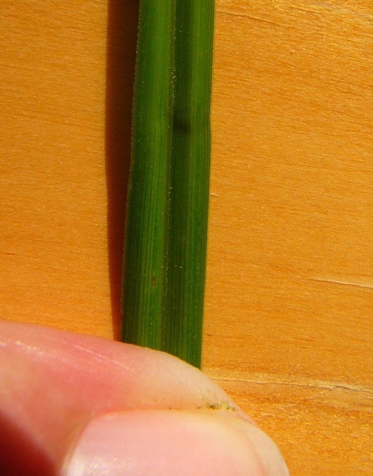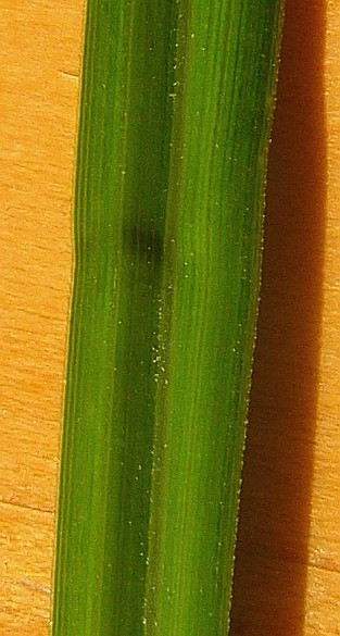 Sehr selten in Brandenburg Blätter 2 - 3 mm breit Schläuche undeutlich nervig, Spelzen immer spitz > 2