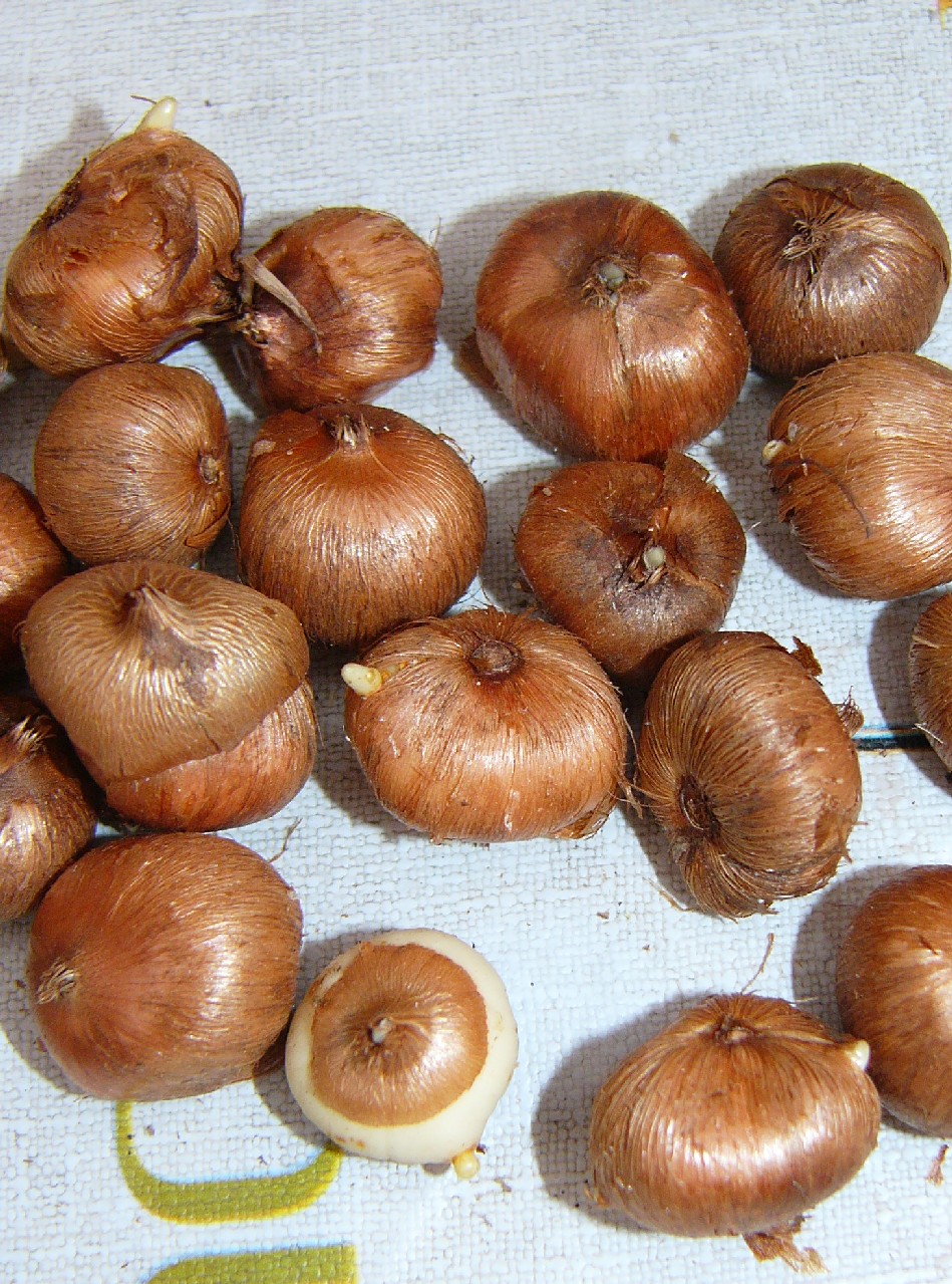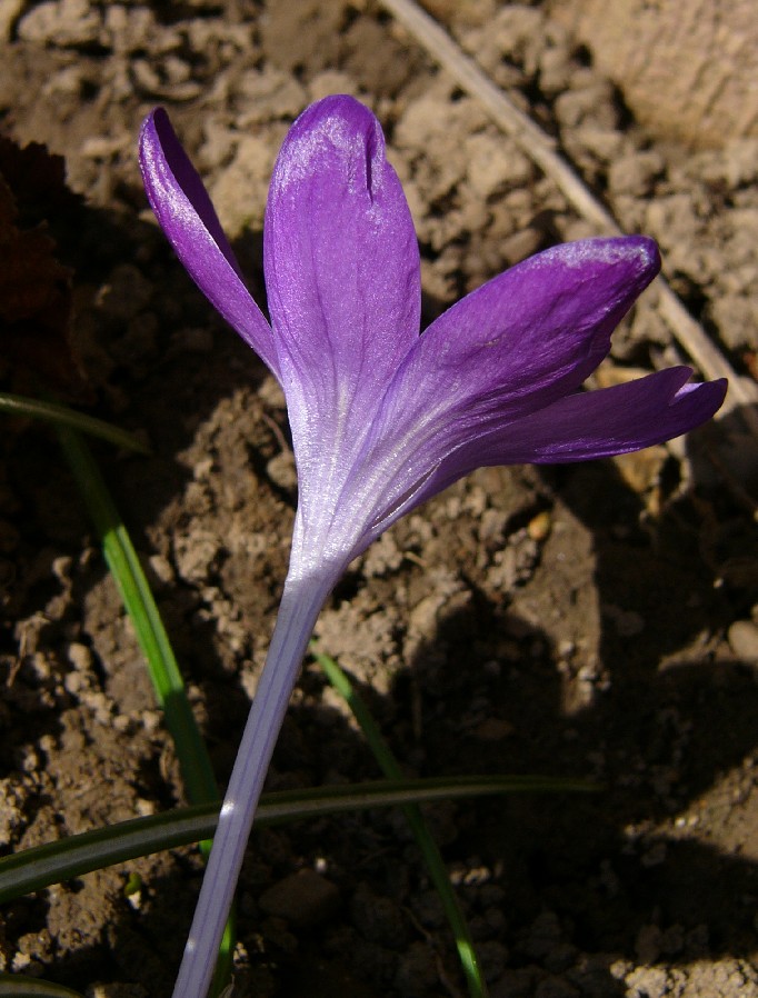 Pflanze 7 - 17 cm groß Schlund helllila Perigonröhre im oberen Teil dunkelviolett, Blätter ca. 4 mm breit Zwiebeln ca. 2 cm im Durchmesser