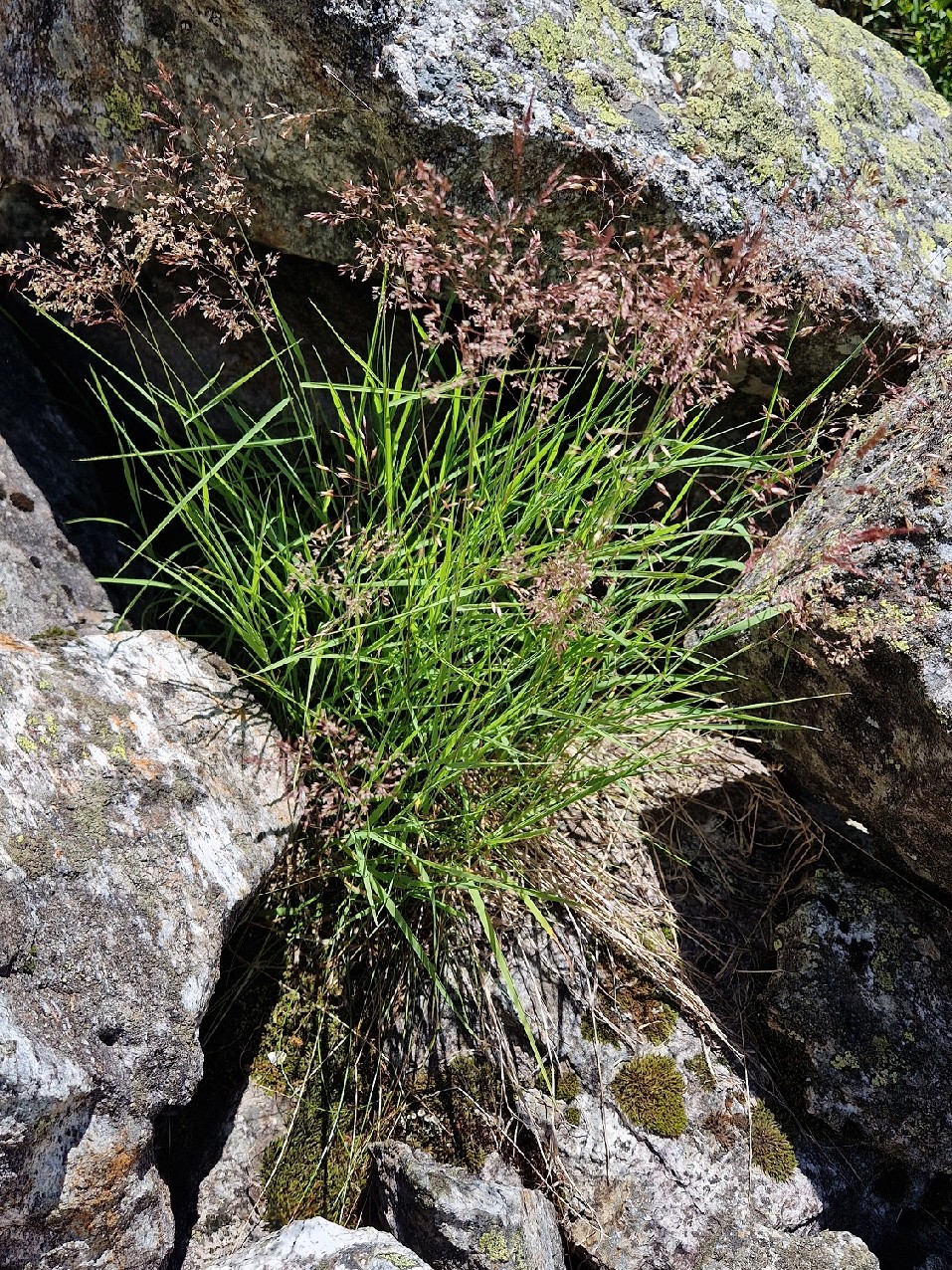 Blattspreiten oberseits etwas rau Rispe kürzer als die halbe Halmlänge Ährchen auch im unteren Teil der Rispenäste > 6 |