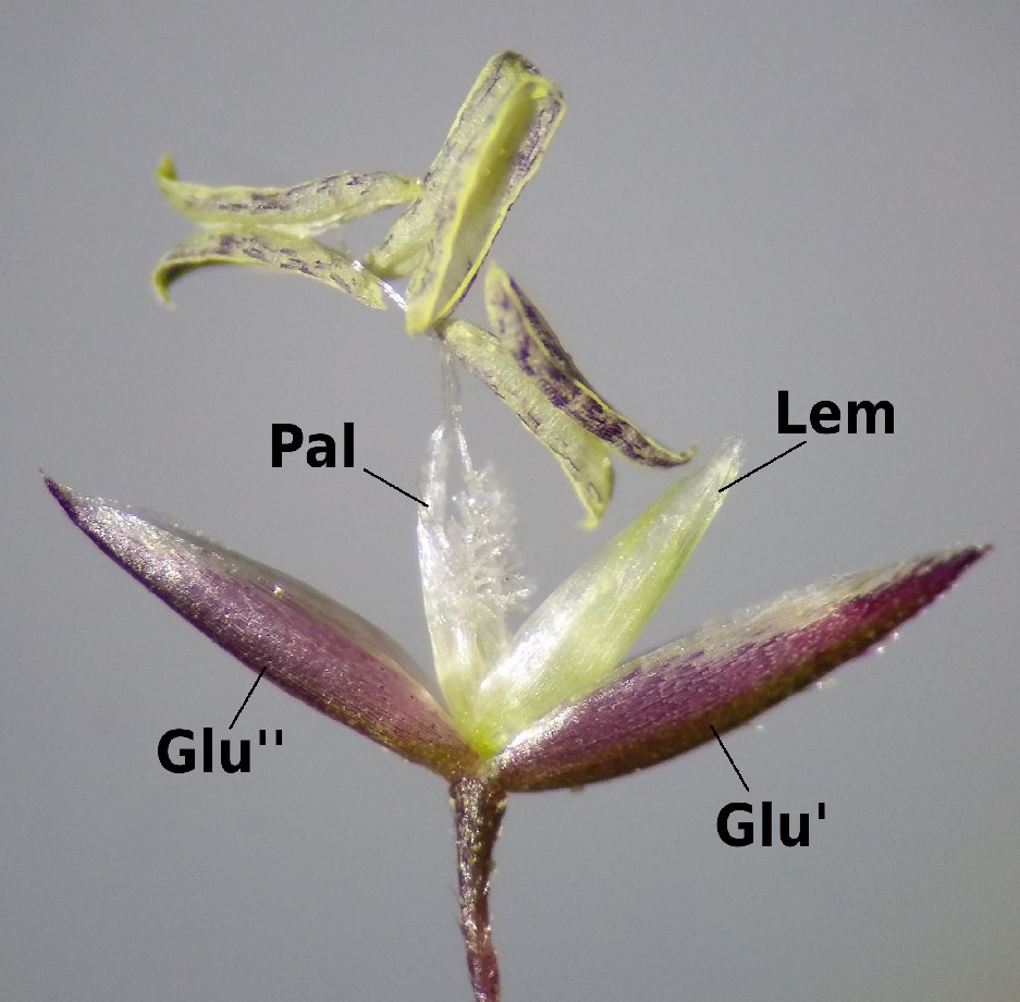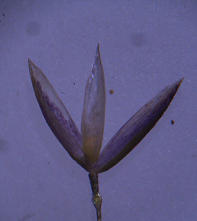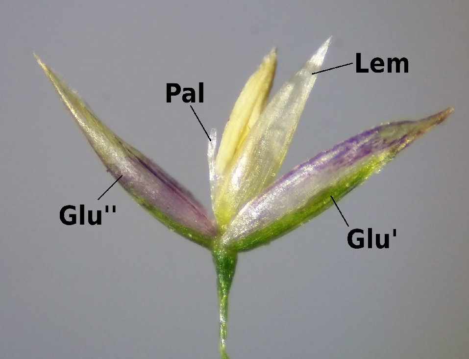 Hüllspelzen violett, häutig, fast gleich lang Deckspelzen häutig, zart ca. so lang wie die