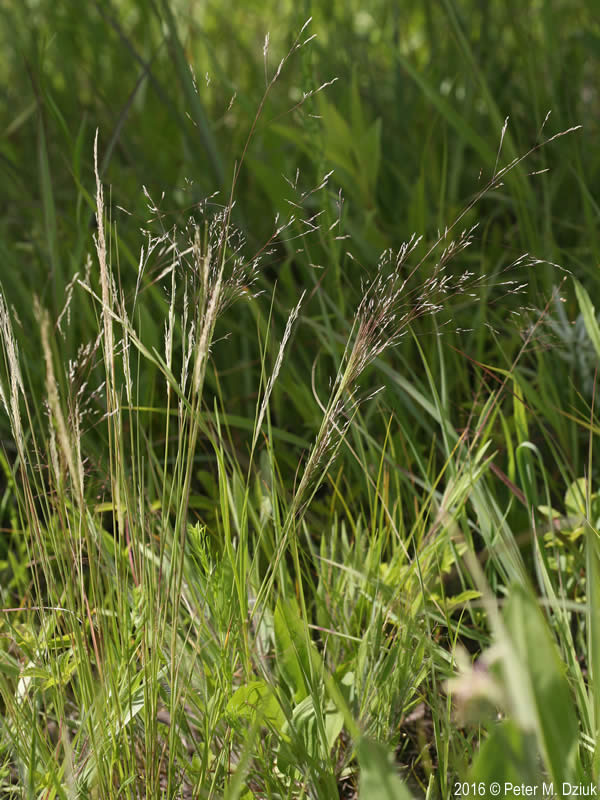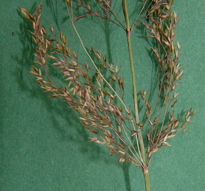 Pflanzen 40 - 120 cm groß Rispe 10 - 20 cm lang Pflanze am untersten Knoten mit 3 - 7 Zweigen Ährchen 2 - 3 mm lang, lanzettlich, spitz,