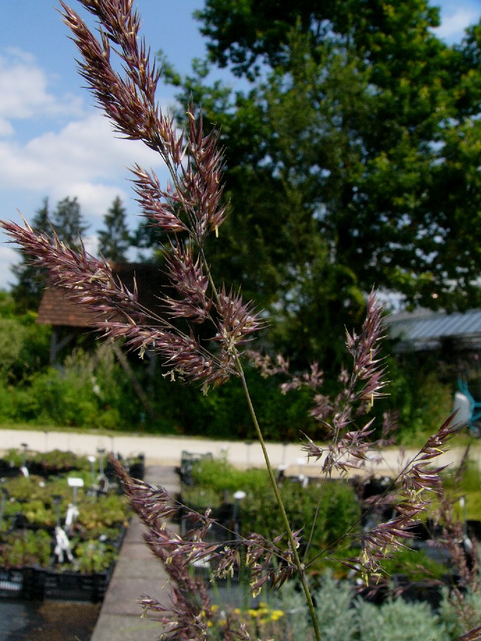 Pflanze 100 - 180 cm groß Rispe reich verzweigt, vielästig Ährchen 4 - 6 mm lang, Granne nur wenig länger als die Hüllspelze, Hüllspelzen linealisch- lanzettlich, im vorderen Teil röhrenförmig Haare am Grund des Ährchens am Grund mit +/- langen Haaren Ligula 1 - 4 mm lang, häutig,