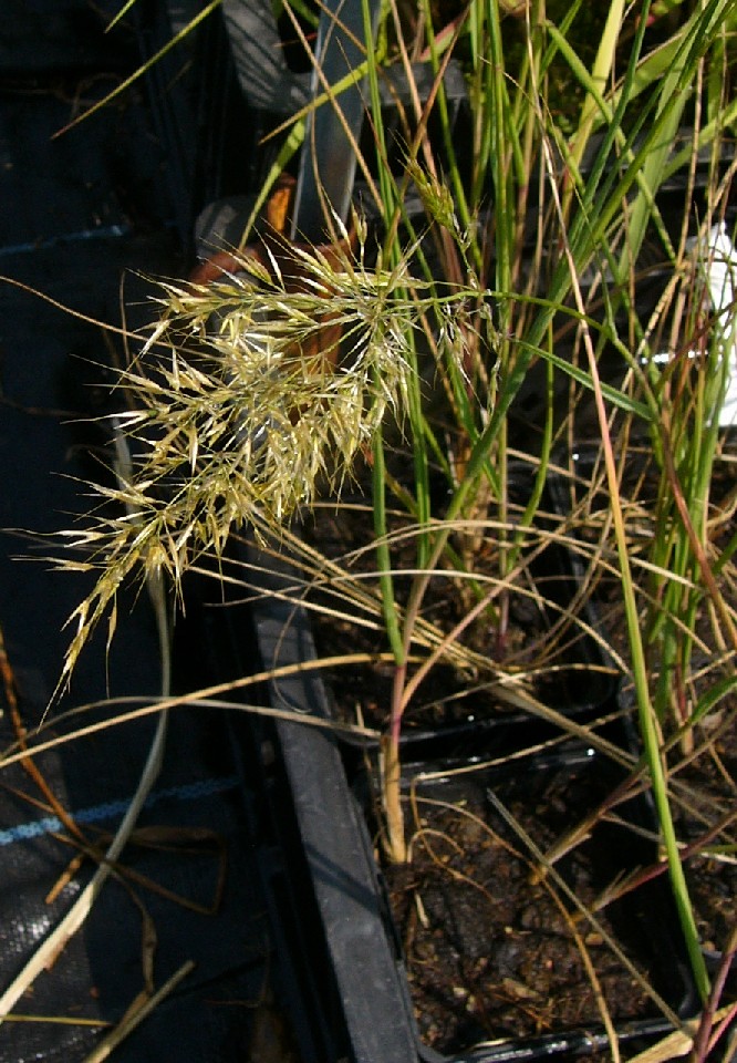 Hüllspelzen fast gleich, Deckspelzen im unteren Teil (= Kallus) mit kurzen Haaren Blattspreiten bis 20 cm lang, 1 - 5 mm breit Blatthäutchen 4 - 6 mm lang, häutig Blattscheiden kahl, etwas rau
