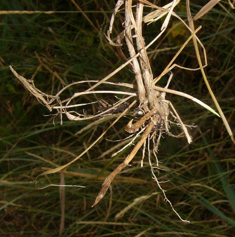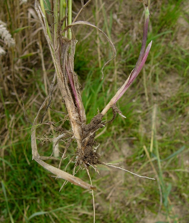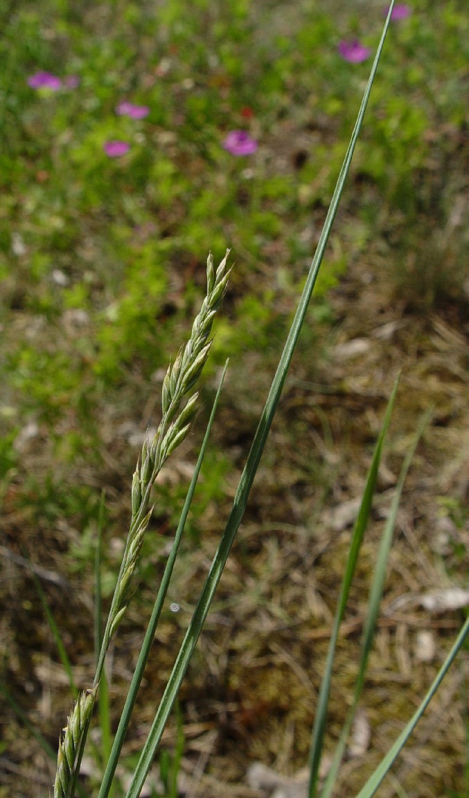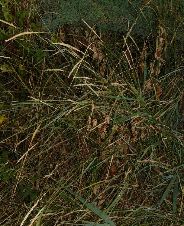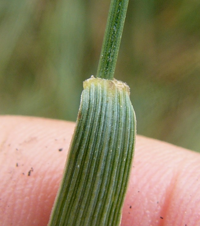 Ligula 0,3 - 0,6 mm, häutig Blattspreiten 8 - 15 cm lang und 2 - 3 mm breit, Obere Blattscheiden kahl, mit 2 schmalen Öhrchen