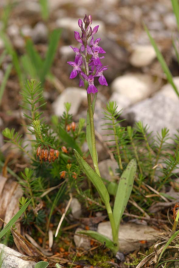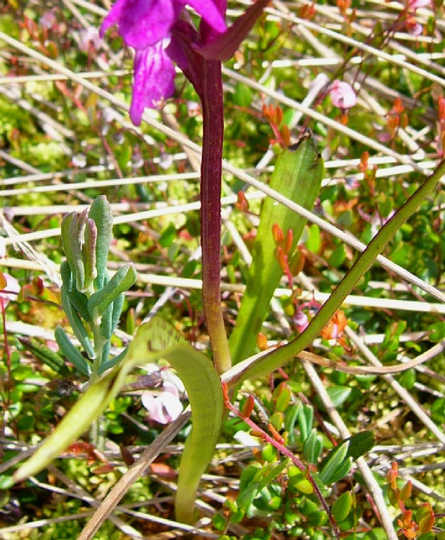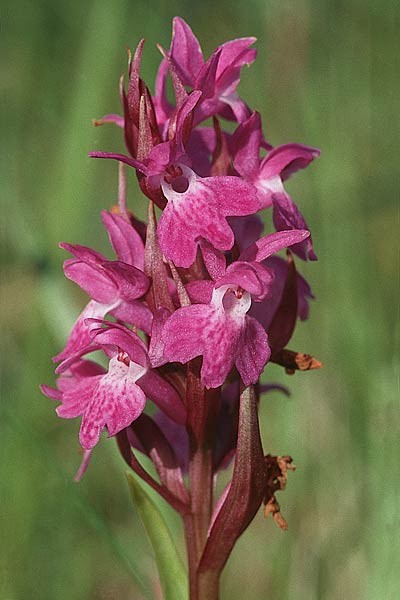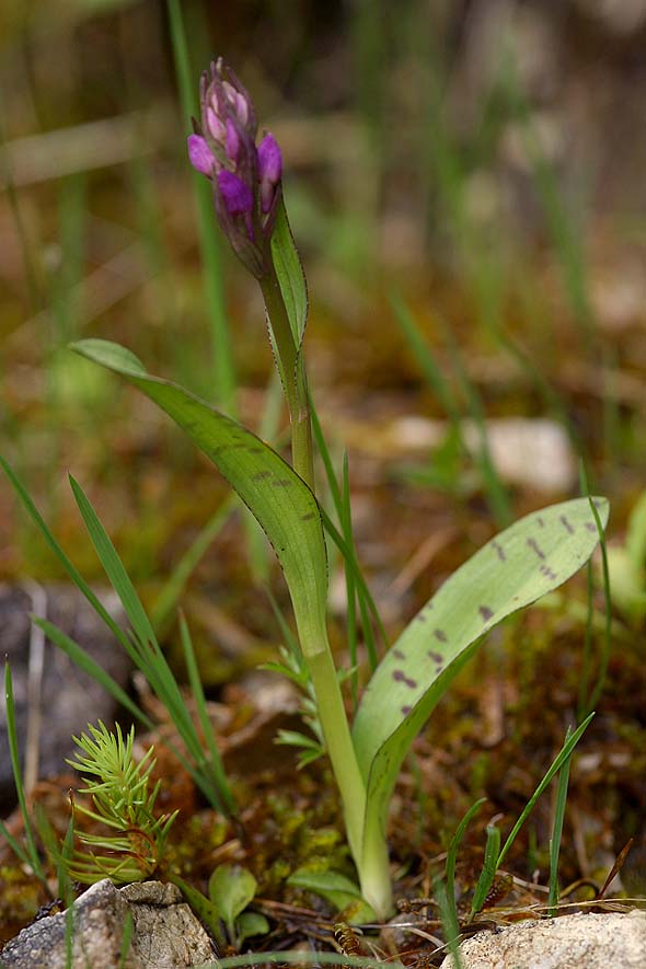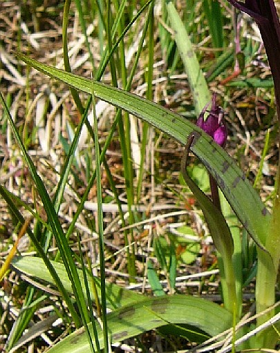 2 Blätter meist ungefleckt, Blüten intensiv purpurn, Lippe nicht oder nur schwach 3- teilig