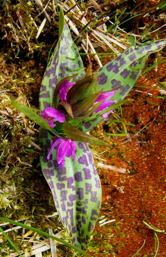 rotviolett, Lippenränder etwas nach oben geschlagen, größtes Blatt 4 - 5 mal so lang wie breit, gefleckt oder ungefleckt > 9