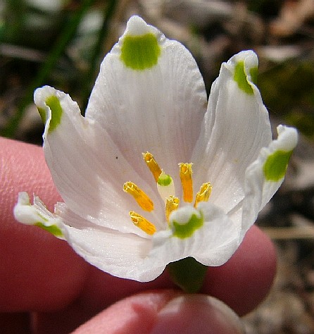 Blüten ohne Nebenkrone Innere Blütenblätter halb so lang wie die äußeren > Schneeglöckchen (Galanthus)