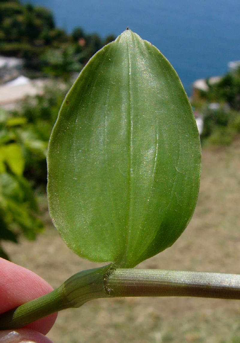 Blätter eiförmig, Blattgrund scheidig den Stängel umgebend