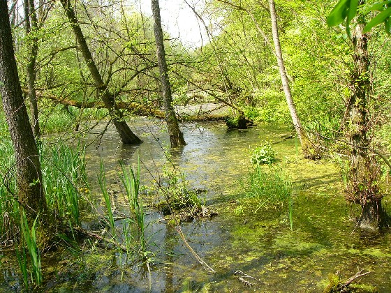 sich eine Hangquelle mit Kalktuffbildung. Im feuchten Boden gedeihen