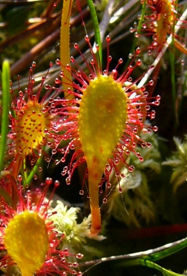 zahlreiche seltene Pflanzen wie z.B. Sonnentau, Sumpf- Herzblatt,