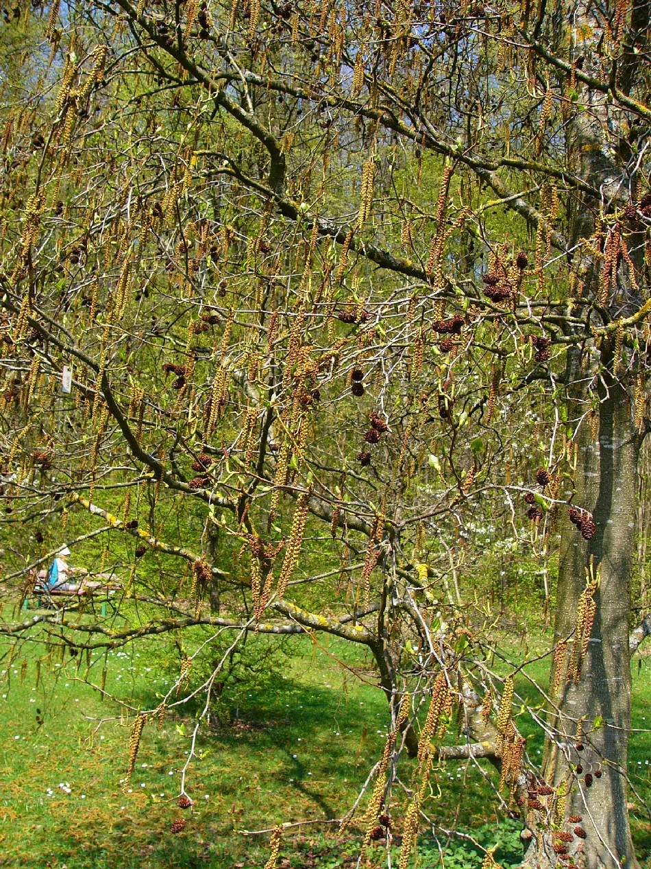 15 - 20 m hoher Baum Oft auch als Straßenbaum gepflanzt Pflanze einhäusig d.h. männliche (hier: gelblich, groß) und weibliche (hier: kleiner, grün) befinden sich auf einem Baum. Kätzchen mit dem Blattaustrieb erscheinend