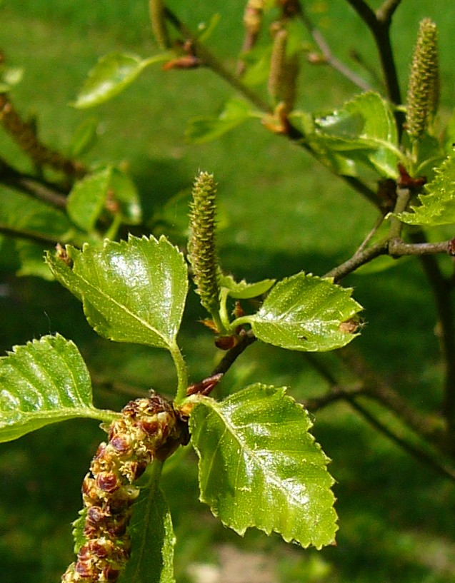 Blätter rundlich- eiförmig, doppelt gesägt, am Grund herzförmig, Zweige +/- glatt, oft mit weißen Lentizellen, biegsam