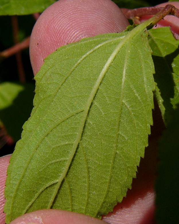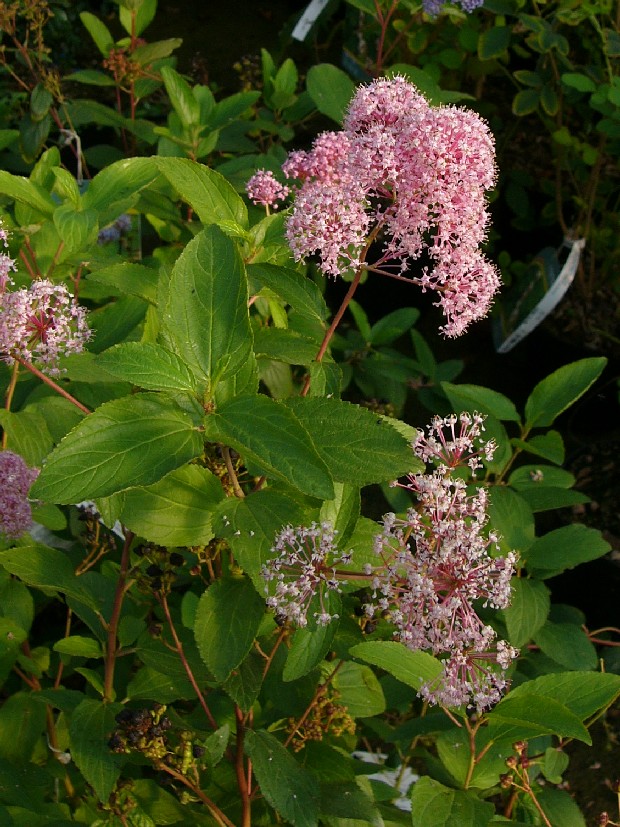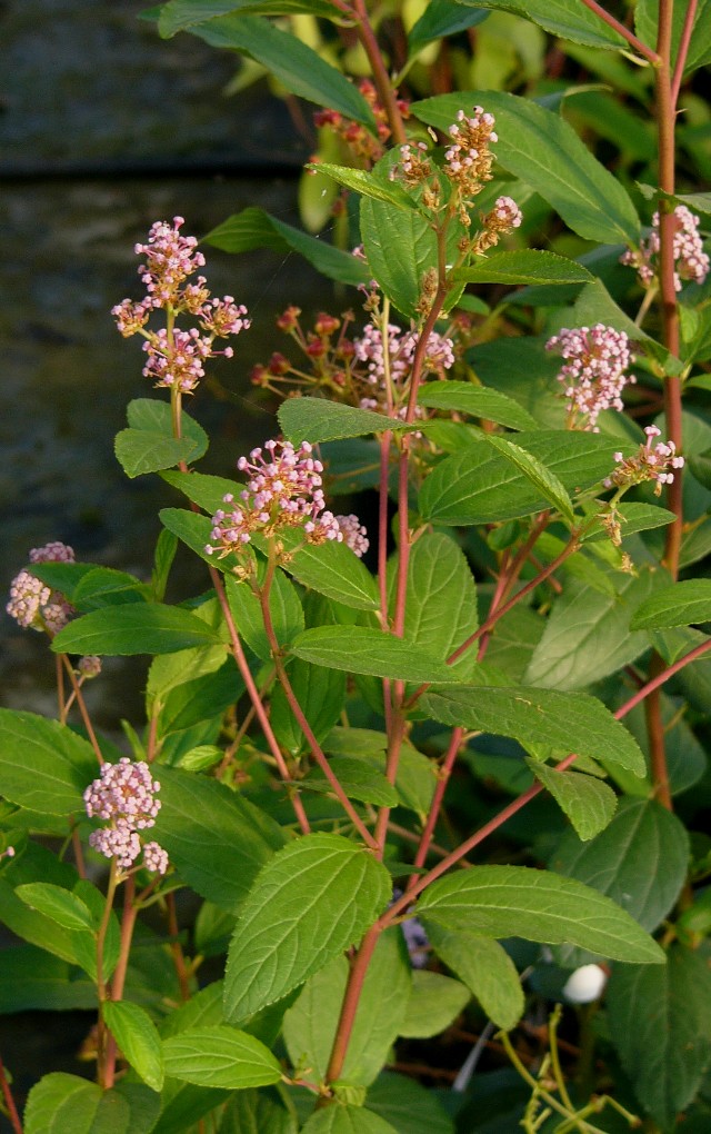 Bis 1,5 m hoher Zwergstrauch Blüten rosa, in vielblütigen Rispen Früchte = rundliche, 3- fächerige Kapsel Blätter bis 8 cm lang, länglich- eiförmig, gesägt bis ganzrandig Blätter unterseits spärlich behaart