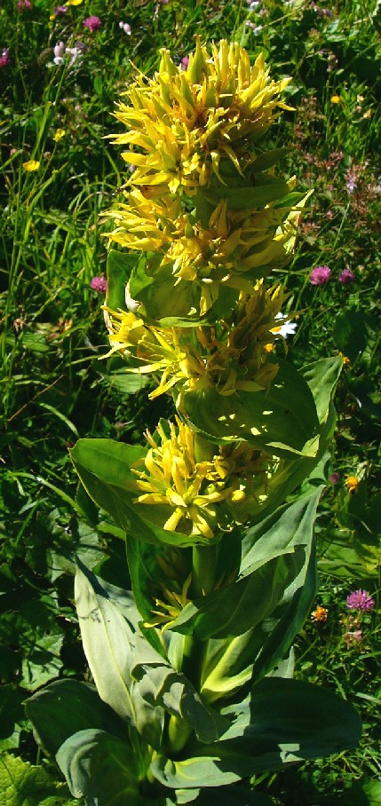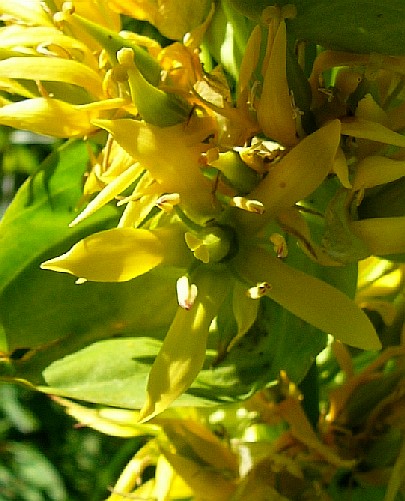 Pflanze 45 - 140 cm groß Blüten goldgelb, fast bis Grund 5 - 6 - teilig, Kronzipfel schmal lanzettlich