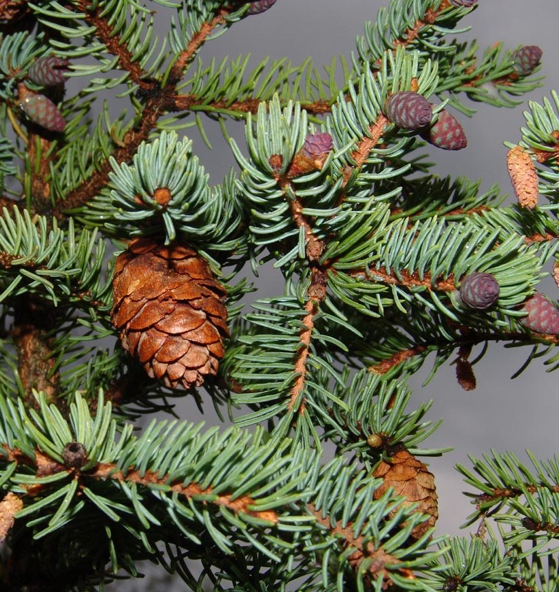 Fichte - Nadeln vierkantig, mit Spaltöffnungsreihen +/- auf allen 4 Seiten, junge Zweige behaart