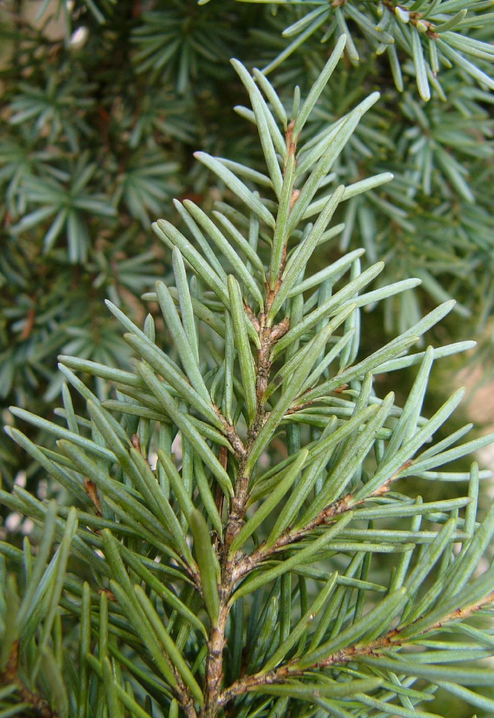 Nadeln schraubig rund um den Zweig stehend, nicht gescheitelt