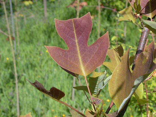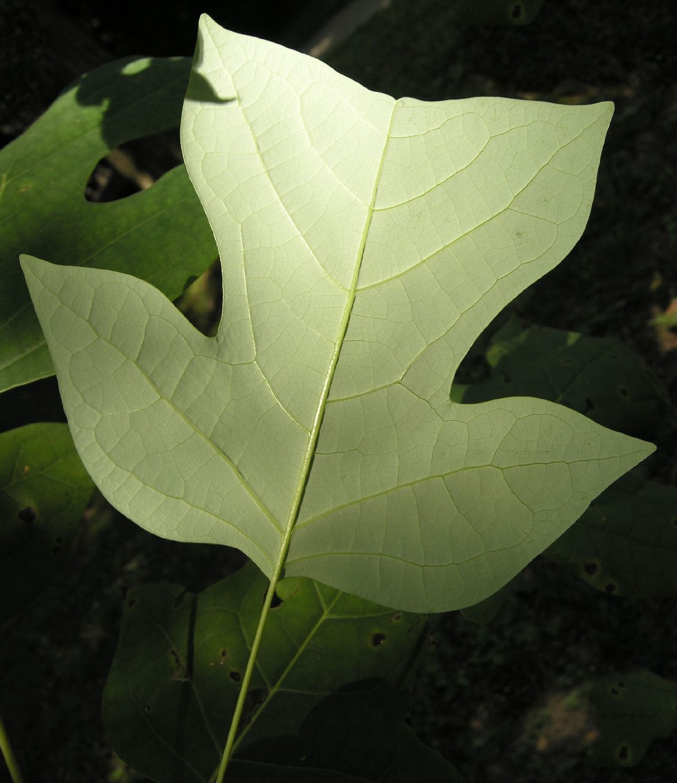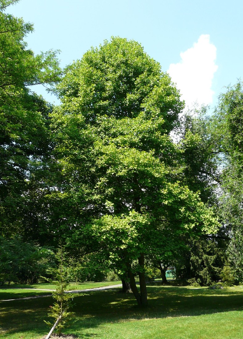 Blüte, Früchte zapfenartig, aufrecht Blätter 4- lappig, höchstens bis zur Hälfte gebuchtet Herbstlaub gelb Borke hellgrau, stark gefurcht