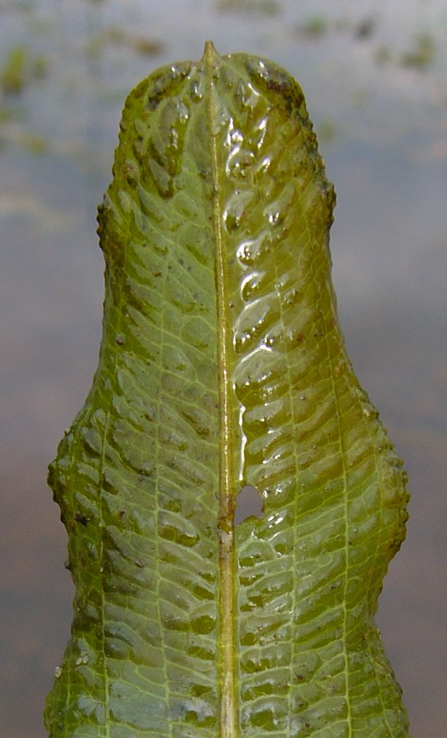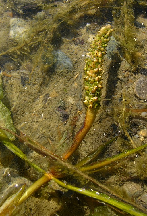 Ährenstiele oben verdickt Alle Blätter untergetaucht, häutig durchscheinend, 10 - 35 cm lang, 20 - 50 mm breit Blattgrund verschmälert,