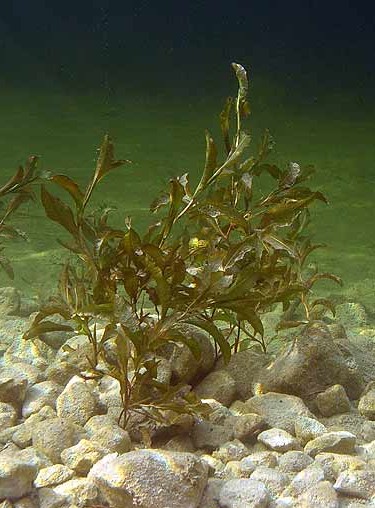 VI - IX, Stehende oder langsam fließende Gewässer Bastard Potamogeton perfoliatus x Potamogeton lucens Synonyme: English name: Nom francais: Verbreitung in