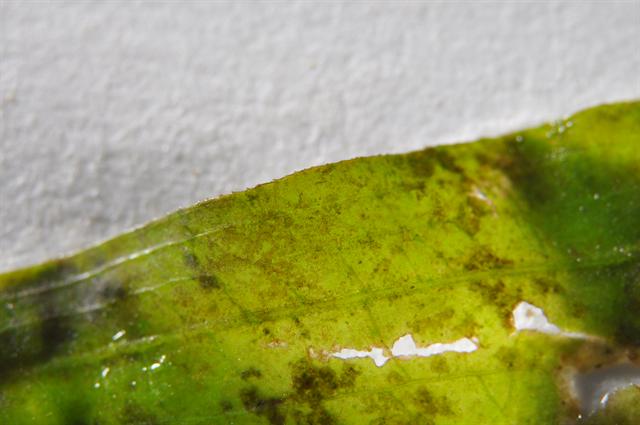 gestielt Mittelnerv dick, bildet eine Spitze oder Horn Blätter mit deutlicher Quernervatur