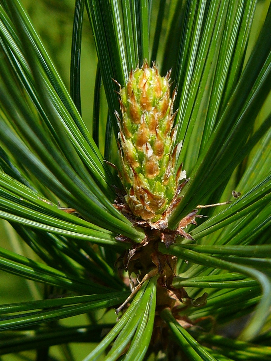 Samen geflügelt Jungtriebe dünn (bis 3 mm Durchmesser), anfangs unter den Ansatzstellen der Nadeln fein behaart, später verkahlend, Nadelscheiden bald abfallend