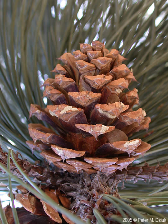 Kiefer - Nadeln vorwiegend zu dritt, Schuppenschild mit kräftigem Dorn