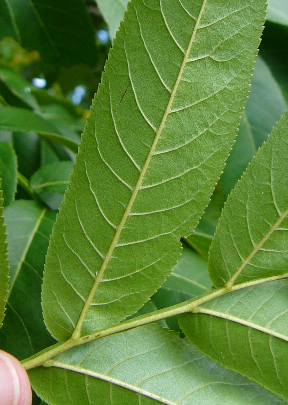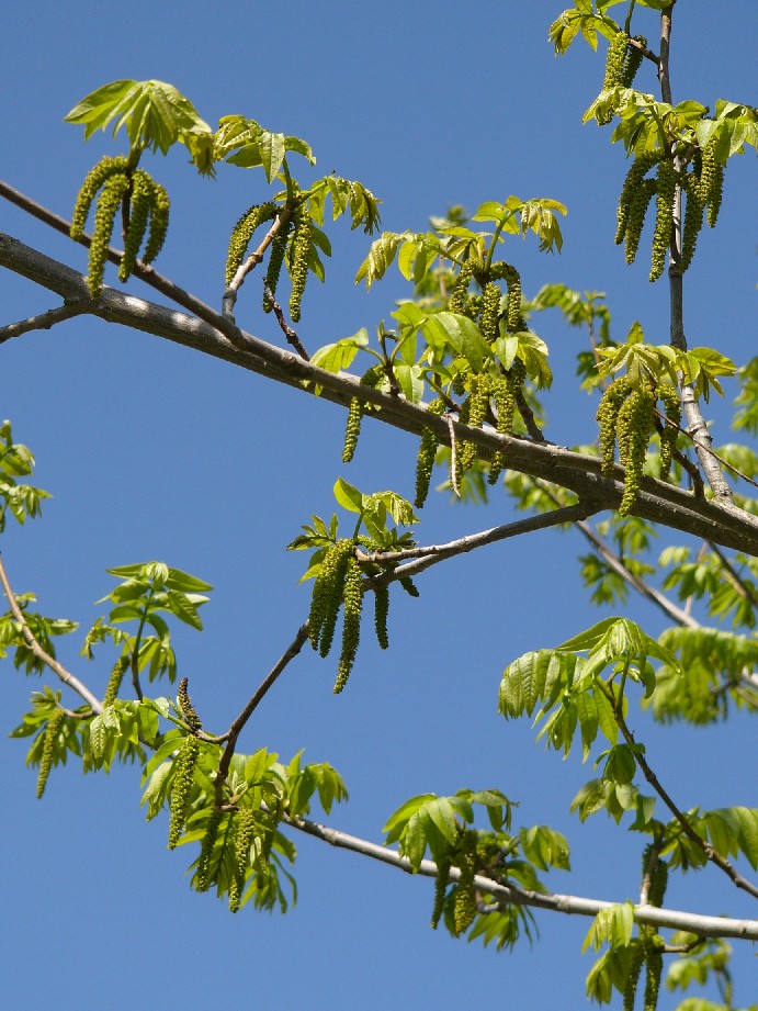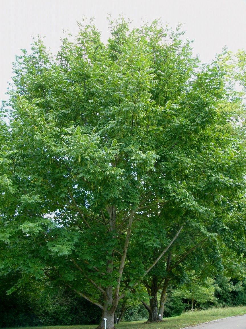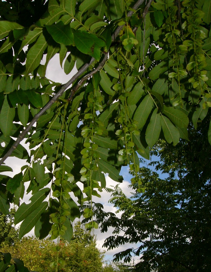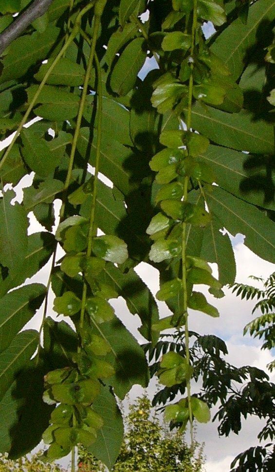 Bis 30 m hohe Bäume Früchte in 20 - 30 cm langen, hängenden Ähren Blätter unpaarig gefiedert, mit 11 - 21 Blättchen Rhachis der Blattspreite im Bereich der Blättchen stielrund Knospen mit 2 - 3, ca. 1,5 cm langen Schuppen