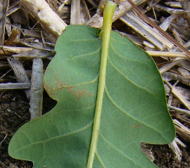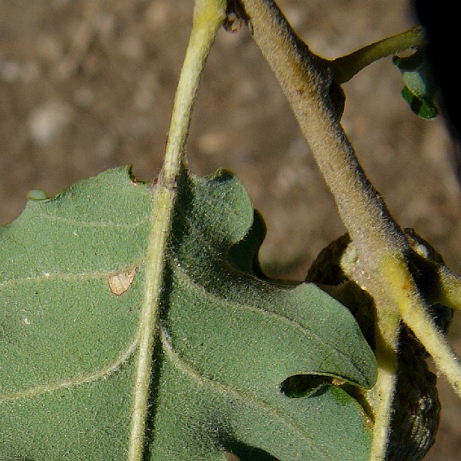- 7 Paar stumpfen Blattlappen Blätter oberseits in der Jugend behaart, später verkahlend Blattunterseite und Blattstiel dicht mit mit Sternhaaren besetzt, junge Triebe flaumig behaart