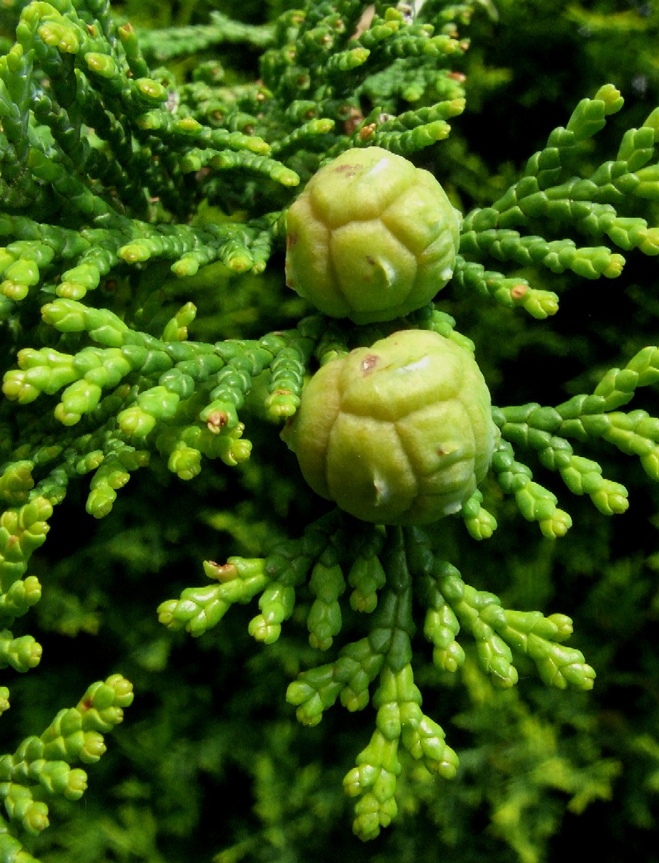 Zapfen kugelig, 5 - 8 mm im Durchmesser, erbsengroß,