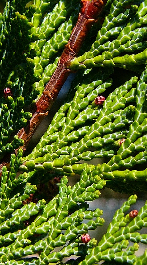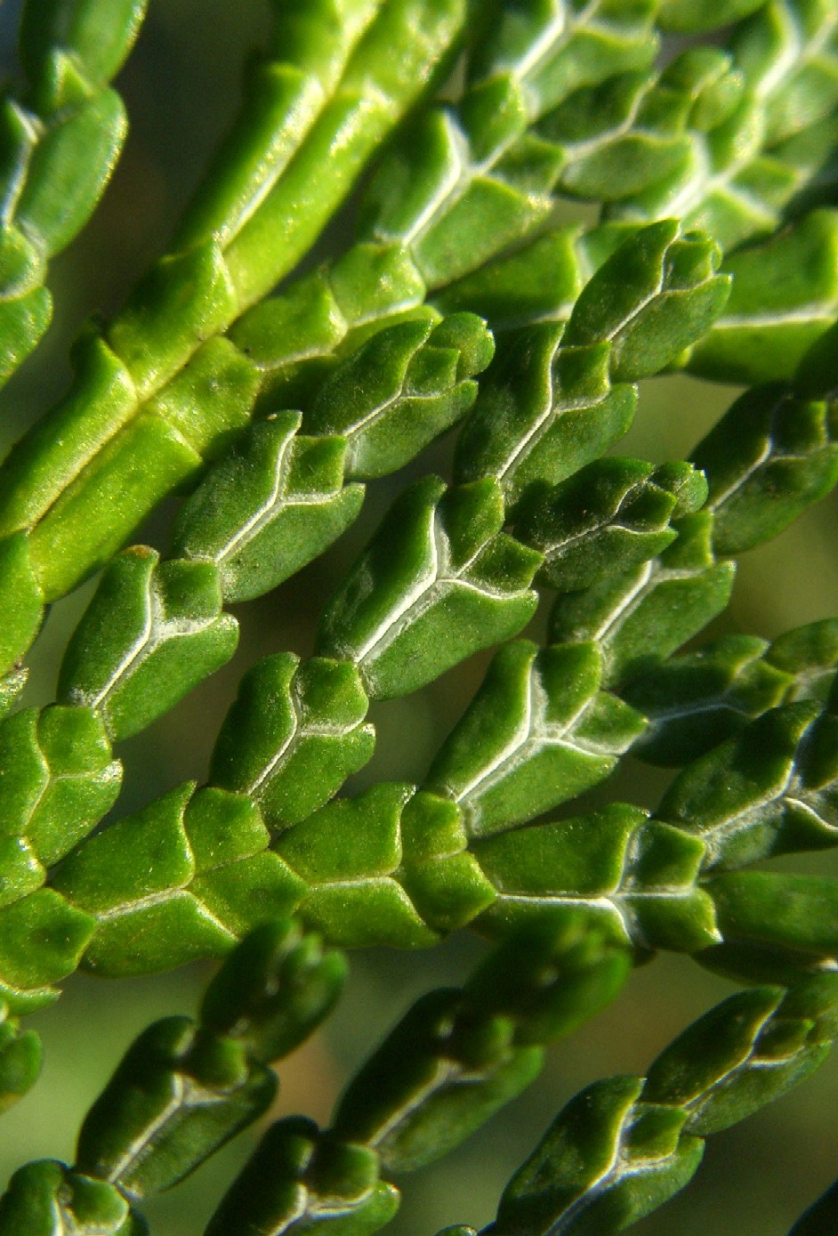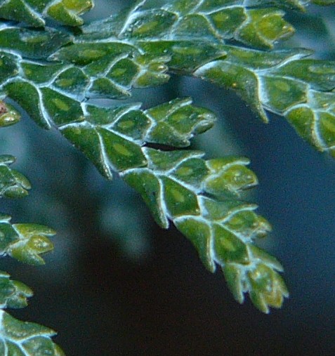 Zweige mit Schuppenblättern, Kantenschuppen +/- weit abstehend