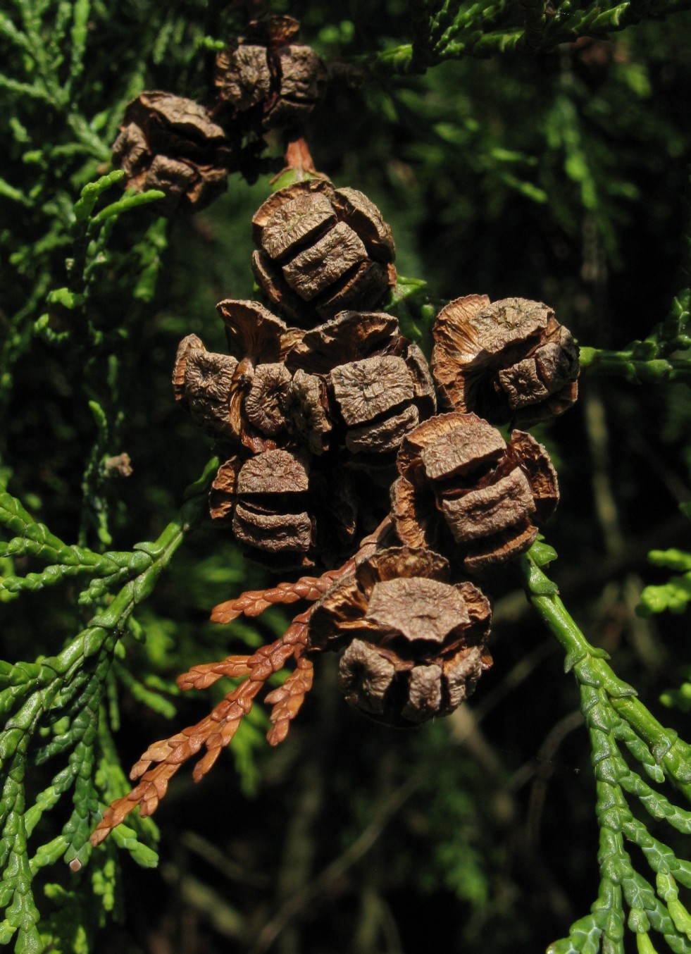 0,2 - 2 m hohe Sträucher Zweige muschelförmig gedreht Pflanze einhäusig: Weibliche Zapfen 8 - 12 mm im Durchmesser, Zapfenschuppen mit kurzer Höckerspitze