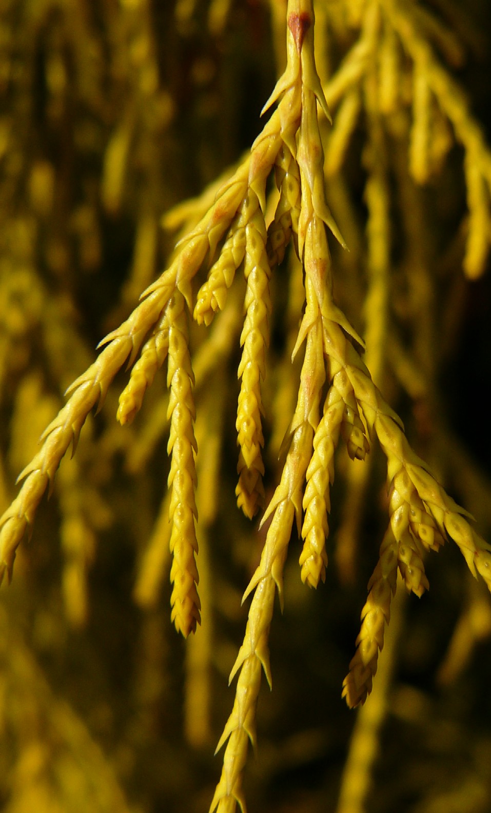 Zwergsträucher oder breit kegelförmiger gelber Strauch oder bis 20 m hoher grüner Baum