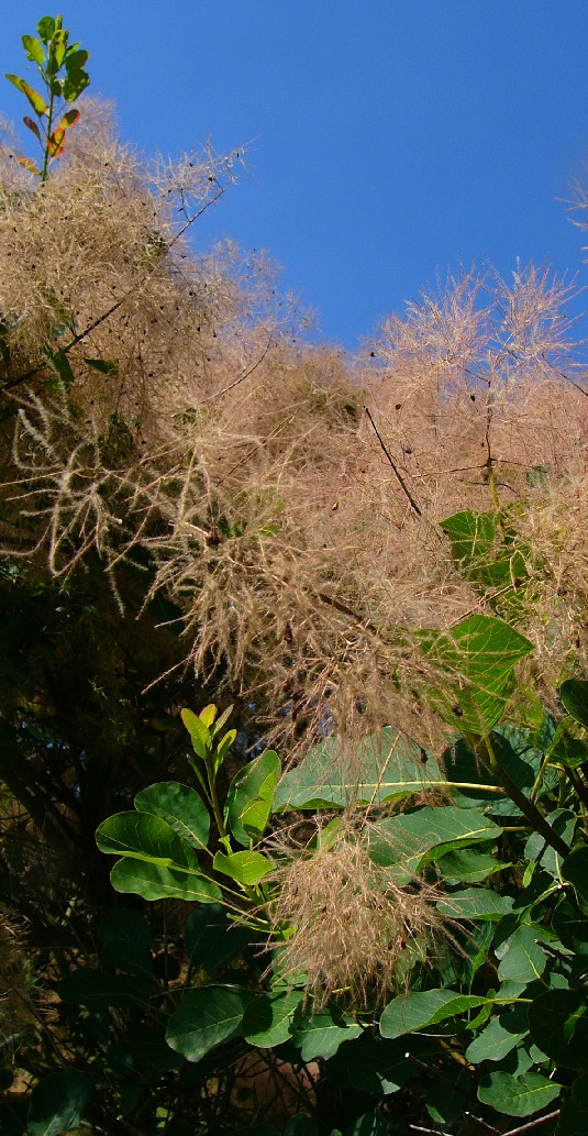 Die Perücke besteht aus den seidig-fedrig behaarten Stielen der unfruchtbaren Blüten