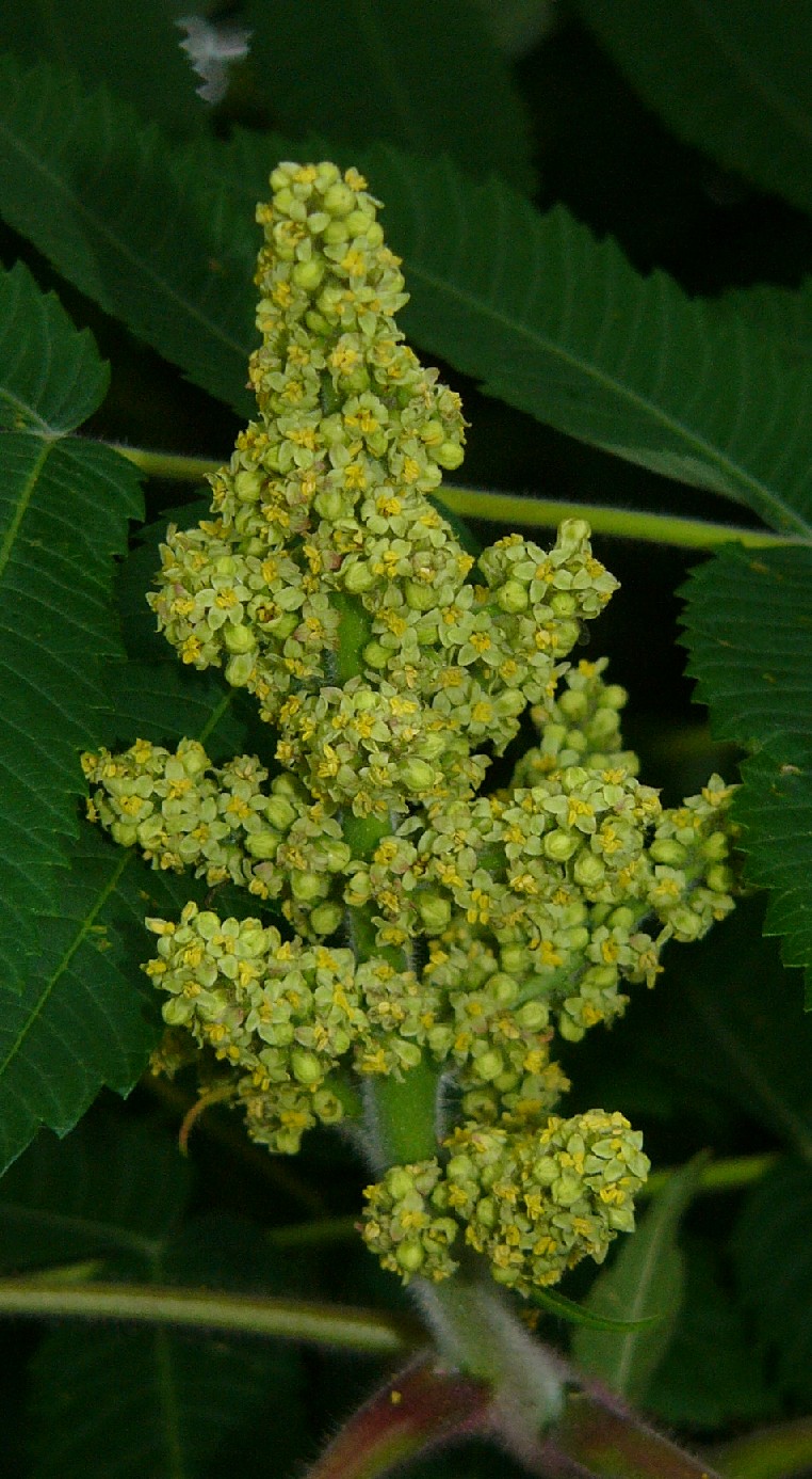 Blüten 2- häusig verteilt: Männliche Blütenstände gelblich grün,