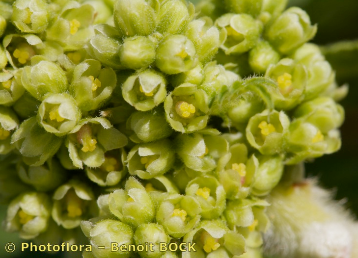 Blüten polygam d.h. es gibt rein männliche, rein weibliche oder zwittrige Blüten, weißlich bis gelblich- grün, radiär, meist 5-zählig