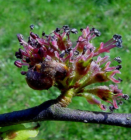 Bis 35 m hohe Bäume Blüten vor der Laubentfaltung im März/April aufblühend Blüten in einer unscheinbar gefärbten und