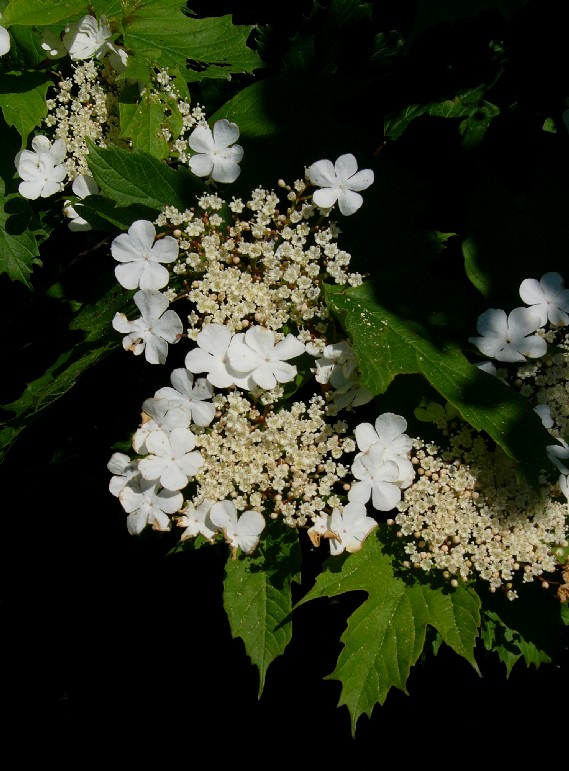 weißen oder gelben Randblüten und inneren kleinen, fertilen Blüten > Gewöhnlicher Schneeball (Viburnum opulus) |