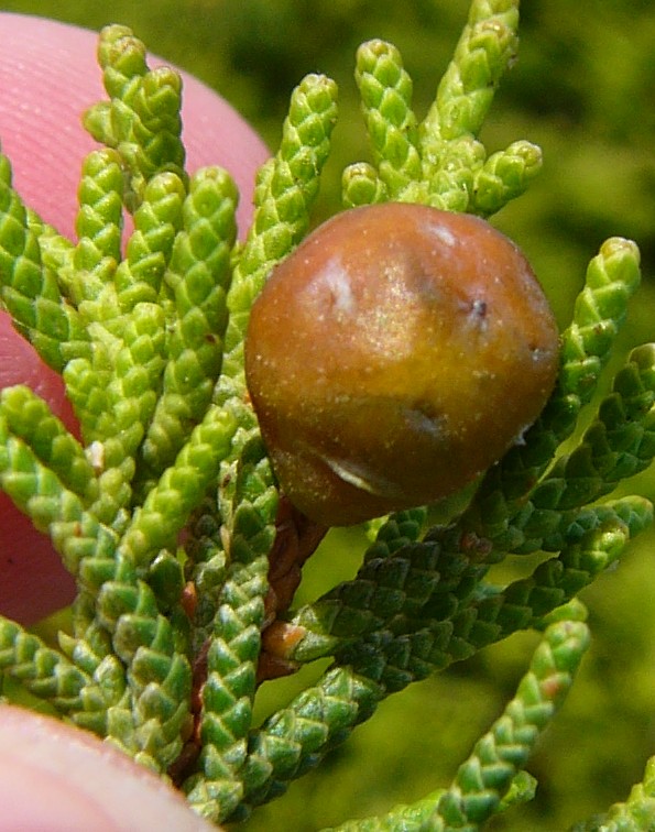 2 Schuppenblätter stumpf, Reife weibliche Zapfen kugelig, 8 - 12 mm im Durchmesser