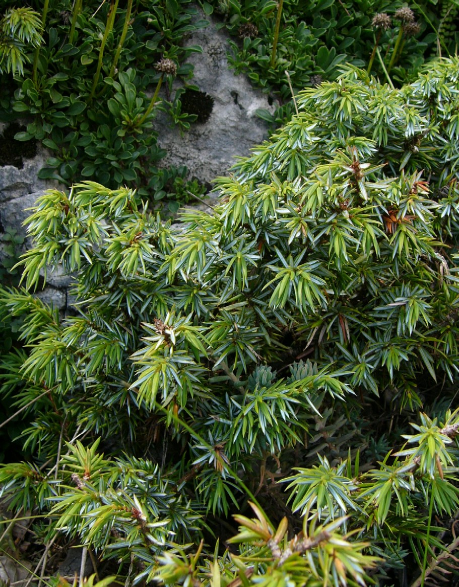 | Niederliegender bis 80 cm hoher Strauch Nadeln nach oben gebogen, 4 - 8 mm lang, wenig stechend > 1